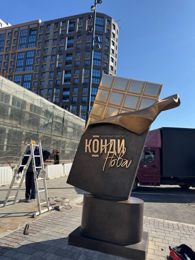 В жилом комплексе «Конди Нова» в Кировском районе Уфы появилась новая символическая скульптура — бронзовая «Шоколадка», созданная известным башкирским скульптором Русланом Нигматуллиным