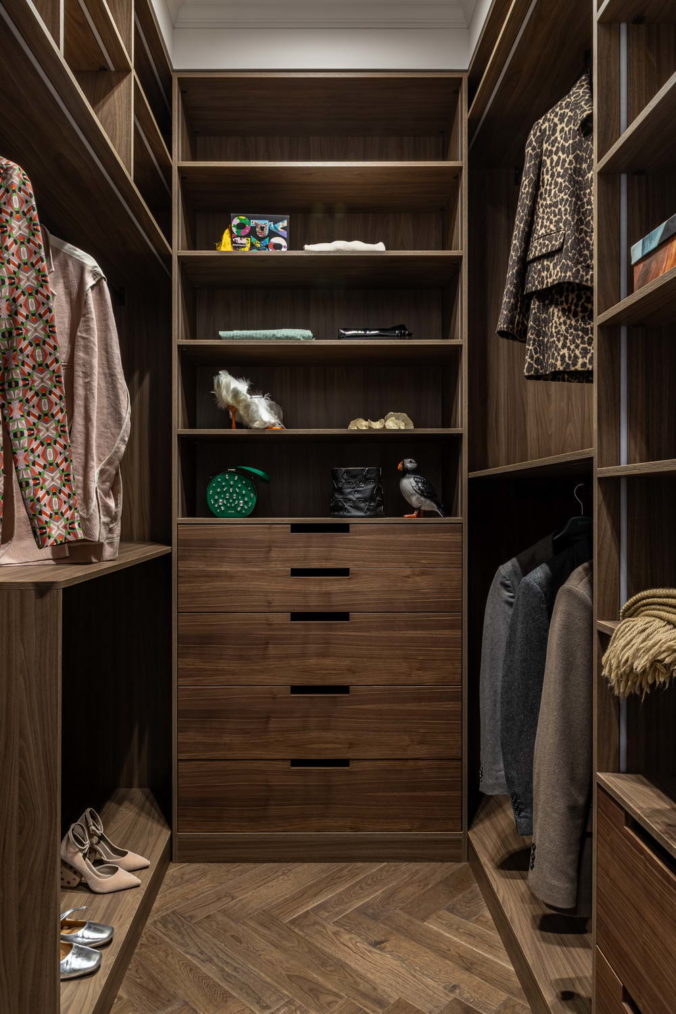 Он соединяет публичную часть квартиры с мастер-блоком (с отдельной ванной и гардеробом), второй ванной комнатой, постирочной и гостевой, которая продумывалась таким образом, чтобы в перспективе стать детской.