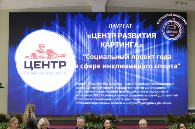 Член Экспертного совета в сфере PR-технологий,председатель Союза пиарщиков России, член Совета по финансовому рынку и инвестициям Торгово-промышленной палаты Российской Федерации Мария Тарханова наградила победителя в Номинации «Социальный проект года в сфере инклюзивного спорта» за создание уникальной адаптивной инфраструктуры, позволяющей спортсменам с различными формами инвалидности заниматься автоспортом и соревноваться на равных условиях: