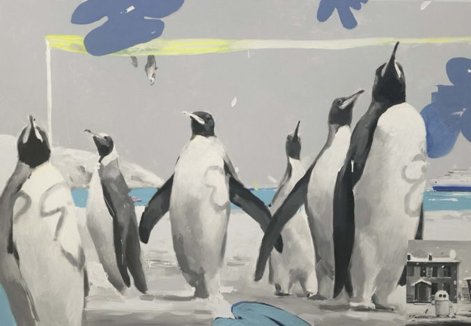 Стенд посвящён двум знаковым художникам галереи — Ринату Волигамси и Алексею Алпатову. Ключевой жанр в их творчестве — пейзаж, который они переосмысляют по‑новому. Если Алексей Алпатов отталкивается от киноприёмов, трактуя свои работы как эпизоды натуралистичного, но несуществующего фильма, то Ринат Волигамси полностью меняет реальность, заставляя усомниться в видимом изображении.