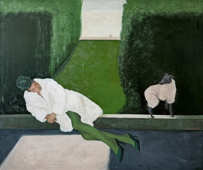 Серия работ Татьяны Абрамовой о парках предстаёт как театральная сцена. Геометрия террас, балюстрад и стриженых газонов здесь становится декорацией для интригующих сюжетов. Парк здесь — собирательный образ: пространство на стыке природы и архитектуры, реальности и воспоминания. Стильные современные героини соседствуют с овцами и пуделями — существами из пасторального, почти сказочного мира. Каждая работа — кадр, застывший на мгновение, где зритель сам достраивает сюжет, решая, кто эта девушка и куда бегут собаки.